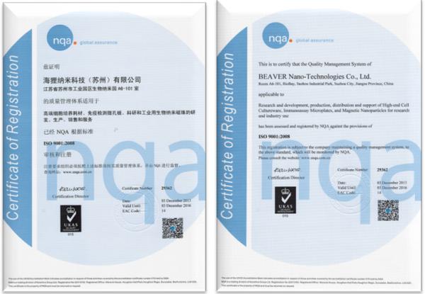 ISO9001質(zhì)量管理標(biāo)準(zhǔn)是迄今為止世界上使用最廣泛、最成熟的質(zhì)量管理方法;NQA是一家權(quán)威的跨國認(rèn)證機(jī)構(gòu),使用英國國家質(zhì)量保證有限公司的認(rèn)證資源,頒發(fā)經(jīng)UKAS認(rèn)可的管理體系認(rèn)證證書。海貍公司作為一家面向國際的生物納米高科技企業(yè),成立伊始就將質(zhì)量視為企業(yè)的生命,從產(chǎn)品設(shè)計(jì)開發(fā)、生產(chǎn)、檢驗(yàn)、售前及售后支持等所有環(huán)節(jié)均嚴(yán)格按照ISO9001質(zhì)量管理標(biāo)準(zhǔn)進(jìn)行全方位、規(guī)范化的管理和控制。海貍采用國際通行的質(zhì)量管理模式對公司實(shí)施管理,并通過了國際權(quán)威機(jī)構(gòu)NQA的審核認(rèn)證,是對海貍質(zhì)量管理體系的最好的肯定;這將對進(jìn)一步提高公司的質(zhì)量管理水平,推動更好更快的發(fā)展奠定堅(jiān)實(shí)的基礎(chǔ)。海貍將繼續(xù)以顧客為關(guān)注焦點(diǎn),持續(xù)改進(jìn)和提升公司的質(zhì)量管理水平,以最好的產(chǎn)品和服務(wù)迎接市場的檢驗(yàn)和挑戰(zhàn)。