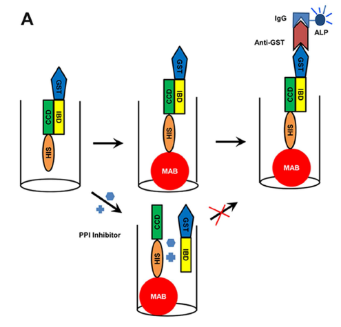 a)GST-IBD與His-CCD置于微孔板中孵育結合,形成PPI復合物